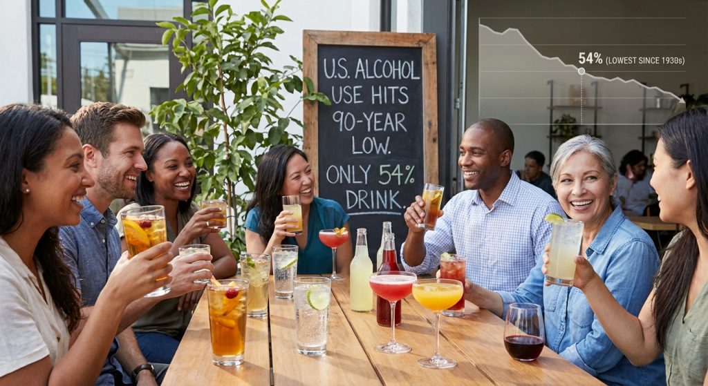 According to bombshell new Gallup polling released this summer, only 54% of U.S. adults say they drink alcohol—the lowest percentage in nearly 90 years of tracking, dipping below the previous record low of 55% set back in 1958. From the post-Prohibition highs of 71% in the groovy ’70s to today’s historic plunge, the numbers don’t lie: we’re in the midst of a full-blown sober awakening.
