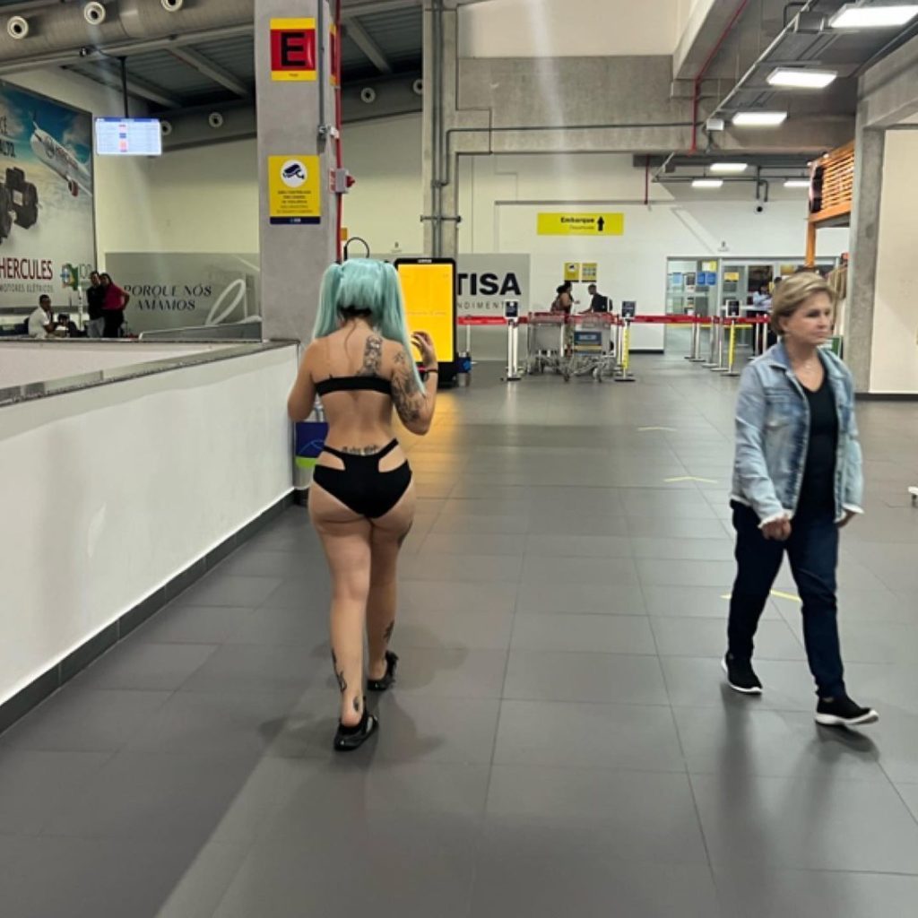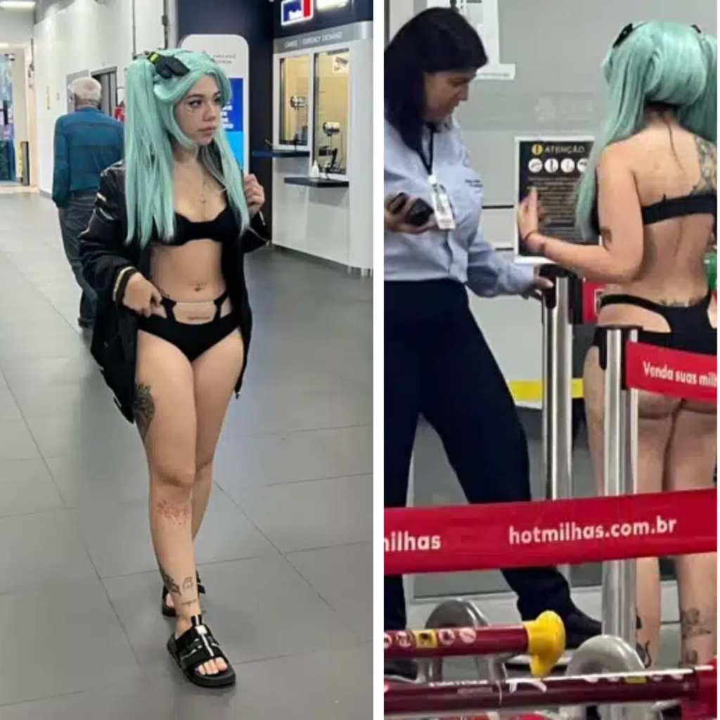 Brazilian model and cosplayer Kine-Chan found herself at the center of controversy after being rejected from flight at airport Navegantes Airport in Brazil. Earlier that day, she had attended a public event dressed as Rebecca, a character from the anime series Cyberpunk: Edgerunners (2022). Her cosplay featured a black bikini, a vibrant blue wig, and black sandals, perfectly recreating the character’s iconic look. Fans praised her attention to detail, and photos of her outfit quickly spread across social media.