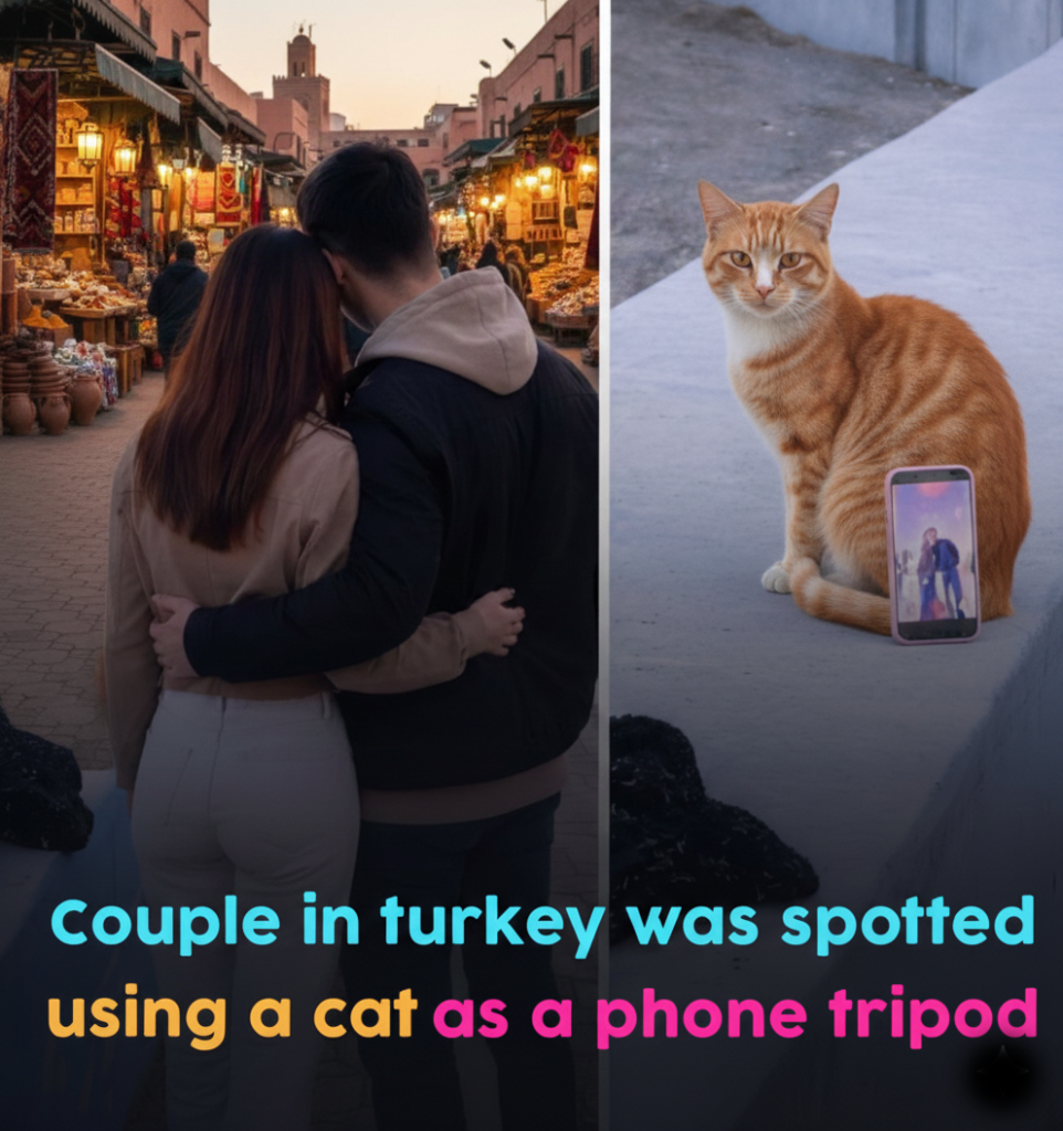 A couple of tourists were spotted posing for photos while their phone rested… not on a stand, not on a rock—but on a very calm and very confused cat. The feline, unfazed and motionless, unknowingly became the most unexpected phone tripod on the internet.
