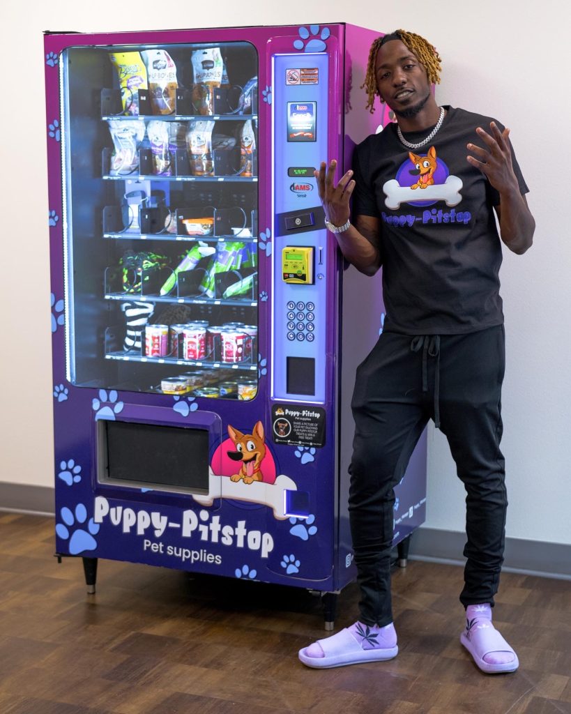 Deleioun founded The Puppy Pitstop, widely described as the world’s first dog vending and wash machine. The concept integrates automated vending, pet care services, and experiential design. The machines are designed to be brand-customizable and feature surveillance cameras to enhance security and capture user interactions.